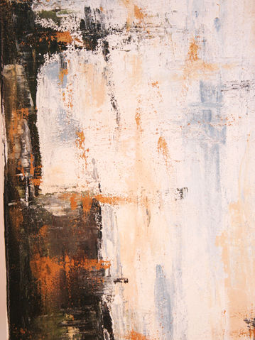 The dark tones on the edges suggest the rich, fertile soil from which all life springs. The heavy, rugged application of paint in these areas symbolizes the ancient, unyielding nature of the earth's crust—full of history, strength, and potential. In contrast, the lighter central area represents purity, renewal, and the delicate balance that sustains life on Earth. The almost ethereal white can be seen as a manifestation of light, purity, and the divine forces that guide the natural world.